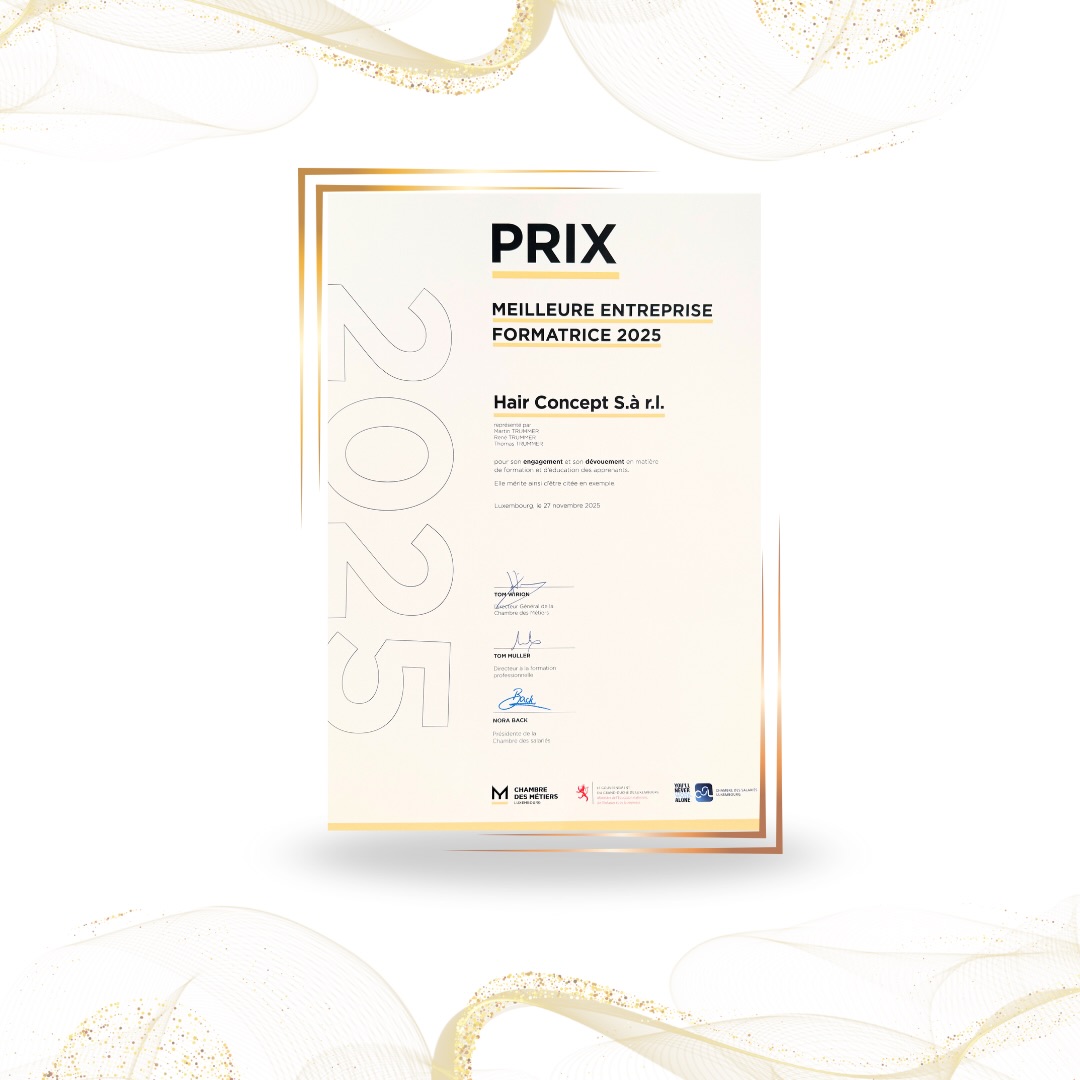 Être distingués comme « Meilleure Entreprise Formatrice 2025 » nous encourage à poursuivre avec passion notre engagement auprès des futurs professionnels de la coiffure.